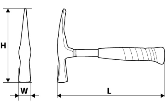 Молоток-кирочка "берлинский", 600 г, (LxHxW) 280 x 200 x 26 мм, металлическая рукоятка - профилированная, закаленная трубка, прорезиненный захват.