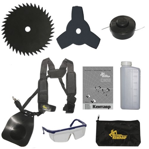 Мотокоса Кентавр МК-5236ТК має розширювальну комплектацію. Крім стандартного набору до комплекту поставки цієї моделі входять 40-зубчастий різальний диск, зручні захисні окуляри, сумка з логотипом торгової марки для запасних інструментів та приладдя. Перелічений додаток до комплектації відрізняє цю модель від моделі МК-5236Т.