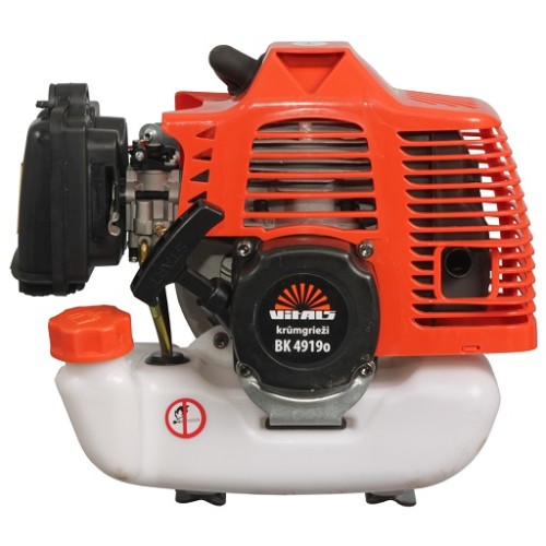 Основа мотокосы Vitals ВК 4919o – бензиновый одноцилиндровый двухтактный двигатель воздушного охлаждения мощностью 2,5 л.с. Максимальная частота вращения составляет 9500 об/мин. Для быстрого и легкого пуска двигателя конструкцией предусмотрена система легкого старта. Таким образом, усилие, прикладываемое пользователем при запуске двигателя, снижено на 30%.