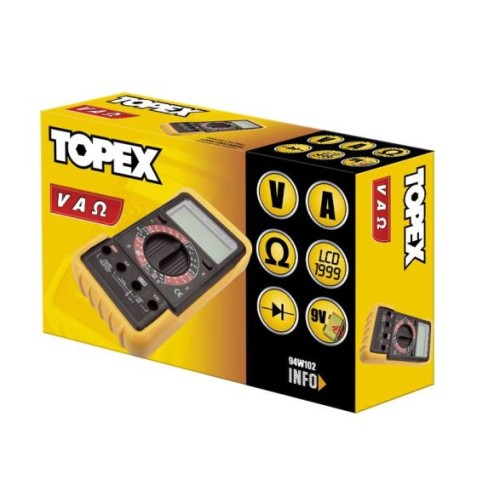 Мультиметр цифровий універсальний TOPEX служить для вимірювання значення змінної та постійної напруги, змінного струму, опору ланцюга, а також для перевірки діодів.