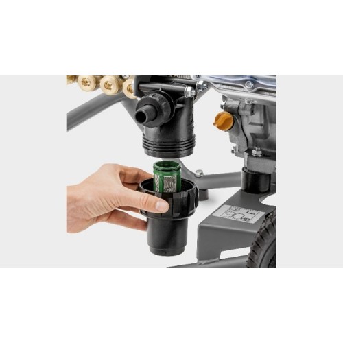 Довговічний та зручний в обслуговуванні. Надійні насоси з колінчастим валом, що відповідають високим стандартам якості Kärcher. Великий фільтр захищає насос від пошкоджень. Термоклапан захисту від перегріву насоса в режимі рециркуляції.