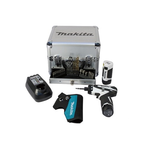 У комплект поставки, крім шуруповерта Makita DF030DWX01 входять 2 акумулятори BL1013, зарядний пристрій, набір аксесуарів, ліхтарик, чохол та валіза для транспортування.