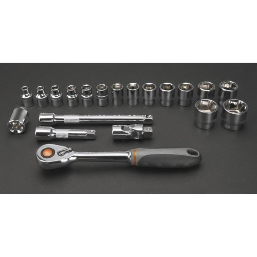 Торцеві ключі 3/8 набір 20 шт. 12, 13, 14, 15, 16, 17, 19, 22, 24 мм, сталь CrV, пластмасова валізка.