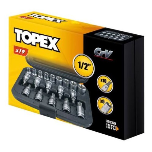 Набір ключів торцевих 1/2” TOPEX призначений для виконання механічних робіт, а також робіт, що виконуються майстрами-аматорами.