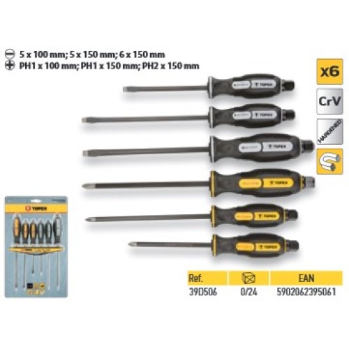 Набір ударних викруток PH1, PH2 - 6 шт Topex 39D506
