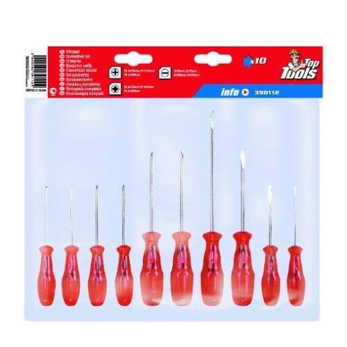 Викрутки, набір 10 шт., загартована вуглецева сталь, шліцеві 3 x 75 мм, 5 x 75 мм, 6 x 100 мм, 6 x 150 мм, 3 викрутки хрестові PH0 x 75 мм, PH1 x 75 мм, PH2 x 100 мм, PH2 x 100 мм x 75 мм, PZ2 x 100 мм