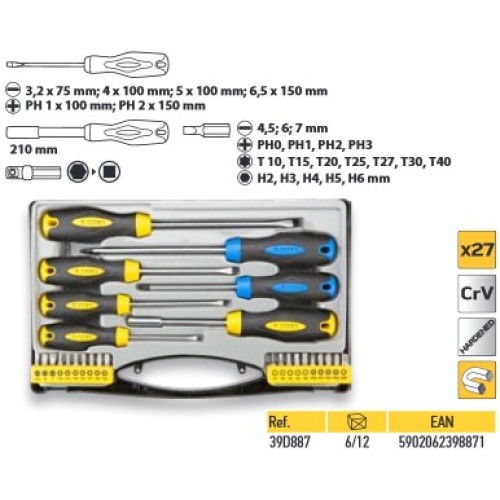 Деталі: Викрутки та змінні наконечники, набір 27 шт.,
