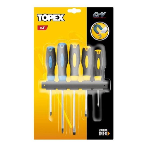 Набір викруток Topex призначений для виконання механічних робіт, а також робіт, які виконують майстри-аматори.