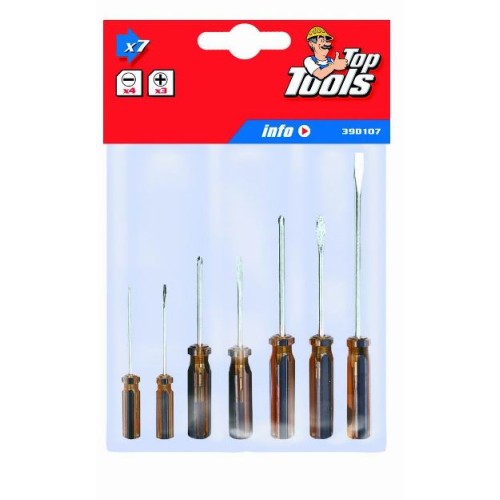 Викрутки, набір 7 шт., Гартована вуглецева сталь, розміри: шліцеві 3 x 75 мм, 4 x 75 мм, 4 x 100 мм, 6 x 150 мм, PH0 x 75 мм, PH1 x 100 мм, PH2 x 100 мм