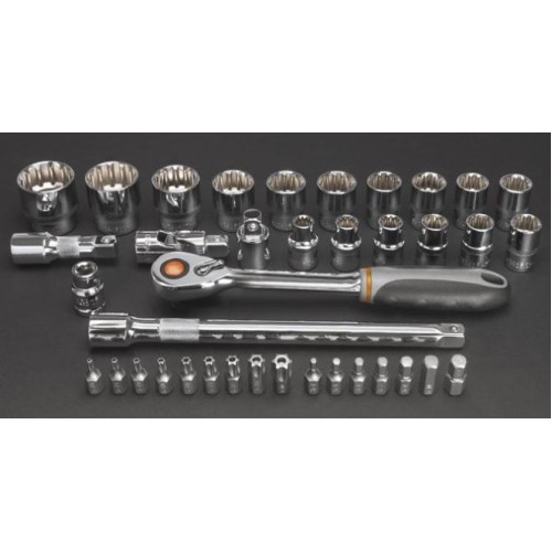 Набір торцевих ключів 1/2" Neo Tools, складається з 38 предметів, виготовлених з високоякісної хромованадієвої сталі. До складу набору входить тріскачка з міцним храповим механізмом (48 зубців). Сферична форма головки забезпечує широку сферу застосування, дозволяючи відгвинчувати гвинти Torx, Spline. і 25-річною гарантією виробника Бренд NEO виправдовує очікування професіоналів.