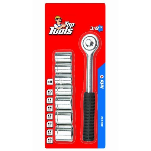 Ключі торцеві 3/8", набір 8 шт. тріскачка, головок розміри: 10, 11, 12, 13, 15, 17, 20;