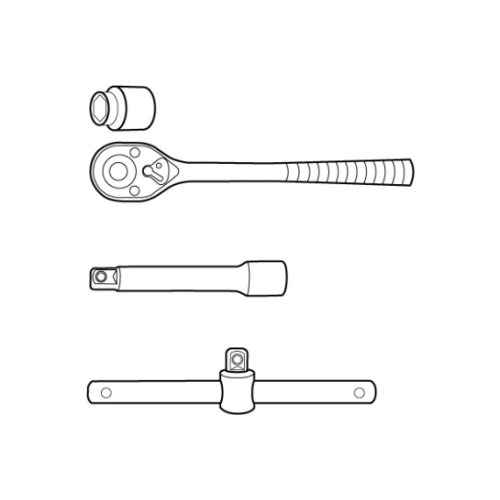 У набір входять, зокрема, широка гама змінних головок, а також тріскачка.