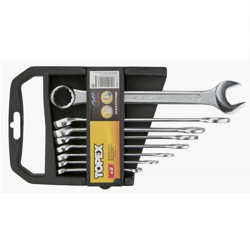 Набір комбінованих ключів TOPEX призначений для виконання механічних робіт, а також робіт майстрів-аматорів. Накидна частина дозволяє добре захопити гвинт. Ключі виготовлені із міцної хромованадієвої сталі, що забезпечує довгий термін служби інструменту. Інструмент упакований у пластикову упаковку, що полегшує зберігання продукту. Бренд TOPEX призначений для домашніх майстрів.