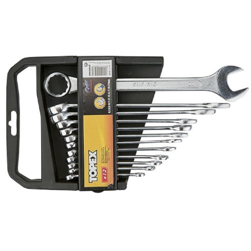 Набір комбінованих ключів TOPEX призначений для виконання механічних робіт, а також робіт, які виконують майстри-любителі. Накидна частина дозволяє добре захопити гвинт. Ключі виготовлені із міцної хромованадієвої сталі, що забезпечує довгий термін служби інструменту. Інструмент упакований у пластикову упаковку, що полегшує зберігання продукту. Бренд TOPEX призначений для домашніх майстрів.
