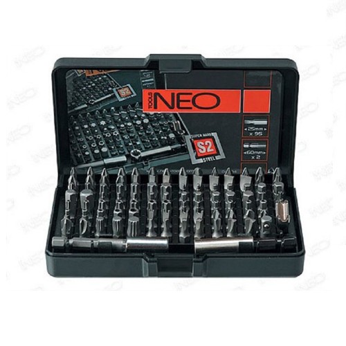 Набір змінних наконечників NEO 1/4", складається з 99 предметів. Завдяки використанню легованої сталі S2, твердість наконечників становить 60 HRC, що значно підвищує надійність і якість їх роботи. У наборі багатий асортимент стандартних і спеціальних наконечників довжиною 25 мм. Додатково додаються адаптери для наконечників. якості та надійності є сертифікат TÜV Rheinland.