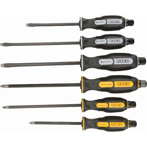 Стрижень кожної з шести викруток виготовлений із міцної хромомолібденової сталі, що забезпечує тривалий термін служби інструменту.