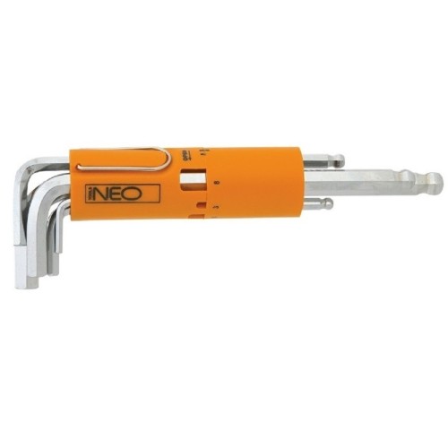 Набір п'ятигранних ключів із отвором NEO. У наборі 9 ключів із розмірами від TS10 до TS50. Високосортна легована сталь S2 забезпечує тривалий термін служби ключів. Набір у зручній упаковці. Надійність інструменту підтверджує гарантія 25 років. Бренд NEO виправдовує очікування фахівців.