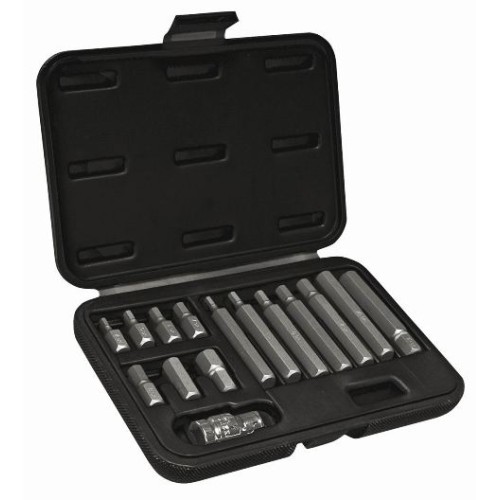 До складу набору входять 14 змінних шестигранних наконечників, а також перехідник.
