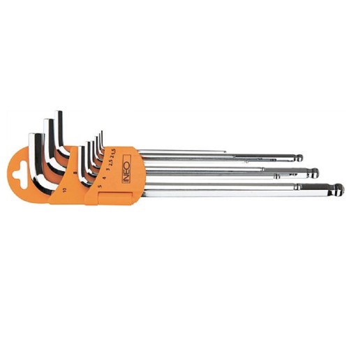 Набір шестигранних ключів NEO. Виготовлені відповідно до вимог стандарту DIN 911. У наборі 9 ключів з розмірами від 1.5 до 10 мм у зручній упаковці. Магнітні, кулясті наконечники з робочим кутом до 30° збільшують функціональність інструменту. Високосортна легована сталь S2 забезпечує тривалий термін служби ключів. Сертифікат TÜV, ISO 2936 та 25-річна гарантія виробника підтверджують високу якість інструменту. Бренд NEO виправдовує очікування фахівців.