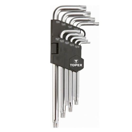 Ключі п'ятигранні довгі TOPEX розмірів TS 10 - 50. Виготовлені із міцної хромомолібденової сталі, що забезпечує тривалий термін служби інструменту. Зручне пластмасове пакування з відділеннями для кожного ключа полегшує їх зберігання. Бренд TOPEX призначений для домашніх майстрів.