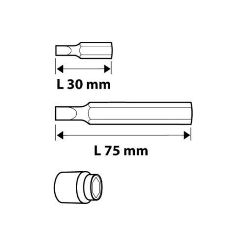7 сменных наконечников 75 мм, размеры: H4, H5, H6, H7, H8, H10, H12;