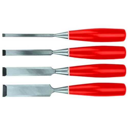 Стамески 6-24 мм, набір 4 шт., Розміри: 6, 12, 18, 24 мм, пластмасова рукоятка