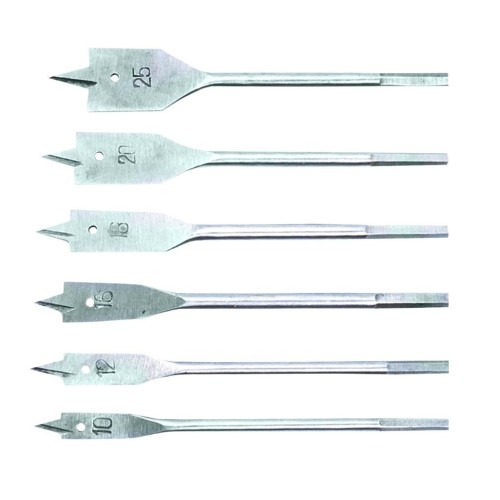 Набір свердел по дереву Top Tools складається з 6 інструментів діаметром 10, 12, 16, 18, 20, 25 мм. Дані свердла спіральні, або ще називають по-іншому — гвинтові. Вони зазвичай використовуються для свердління глибших отворів у дереві.