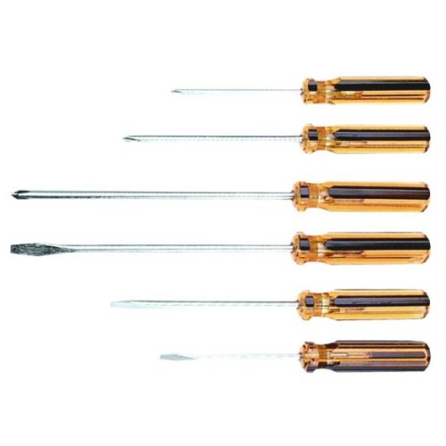 Викрутки, набір 6 шт., загартована вуглецева сталь, розміри: шліцеві 4 x 75 мм, 5 x 100 мм, 5 x 150 мм, PH0 x 75 мм, PH1 x 100 мм, PH1 x 150 мм