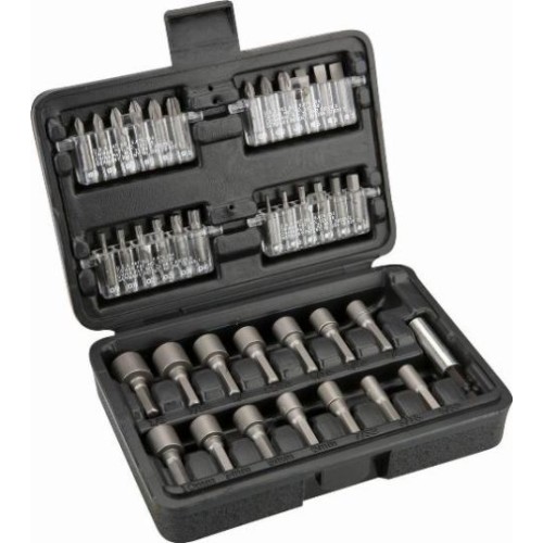 У наборі є, зокрема, шестигранні головки, змінні наконечники, а також ергономічна пластмасова рукоятка, покрита антиковзним матеріалом, що забезпечує комфорт роботи.