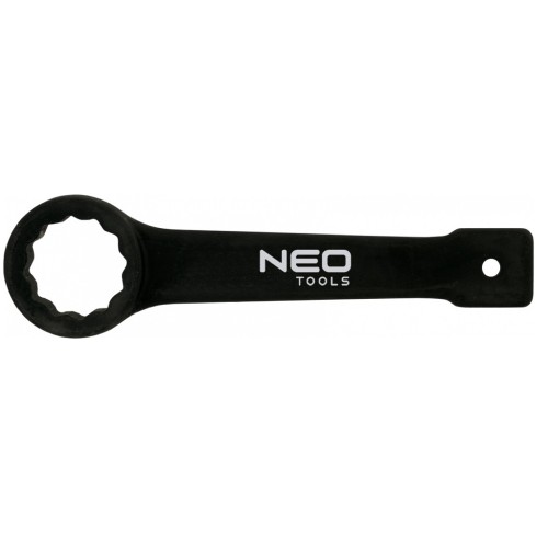 Ключ накидний ударний NEO виготовлений відповідно до вимог стандарту DIN 7444. Завдяки міцній хромомолібденовій сталі, ключ відмінно підходить для монтажу та демонтажу важких гвинтів та гайок. Має ударний кінець, призначений для ударів молотка. Підходить для відгвинчування гвинтів і гайок, що прикипіли. Якість інструменту підтверджена сертифікатом TÜV та 25-річною гарантією виробника. Бренд NEO виправдовує очікування фахівців.