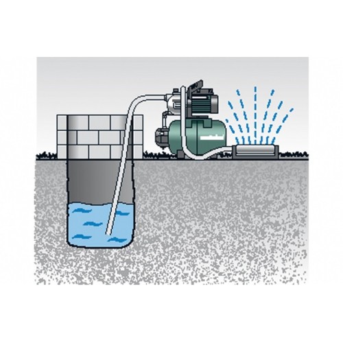 Насосна станція зібрана на новому насосі Metabo P 3300 G та видає до 3,3 кубів води на годину. Сам по собі насос невибагливий у роботі, компактний та надійний. Система захисту від перевантаження захищає двигун від пошкоджень при тривалій експлуатації. (Ця система НЕ унеможливлює захист від сухого ходу).
