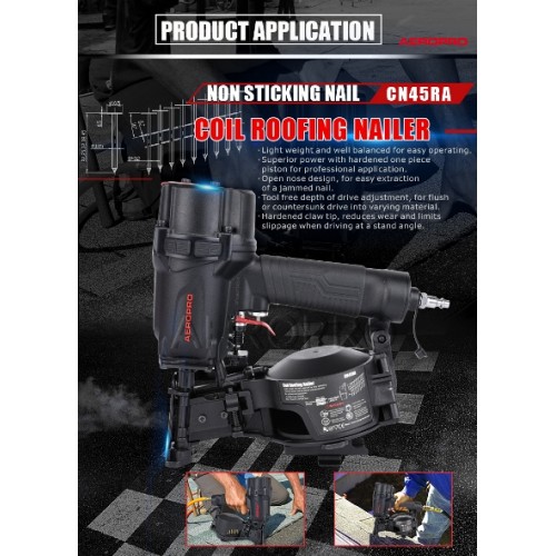 Нейлер покрівельний барабанний AeroPro CN45RA під цвяхи 19-45 для бітумної черепиці