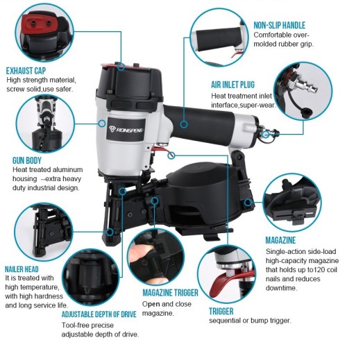 Нейлер покрівельний барабанний Rongpeng CN45N під цвяхи 22-45 мм.