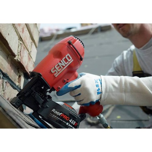 Довговічність, точність і гарний баланс: барабанного покрівельного нейлера Senco RoofPro 455XP виразно привернула увагу будівельних бригад. Ця модель надзвичайно міцна, довговічна та витримує великі навантаження. Гвоздобуд з пневматичним приводом, підходить для професійного використання для великих покрівельних проектів. На відміну від інших пневмоінструментів, Senco RoofPro 455XP рідко піддається подвійному вилитому цвяху або заклиненню. Це універсальний пістолет для покрівельних цвяхів, який можна використовувати для бітумної черепиці, скловолокна, підкладки, єврорубіроіда, ізоляційних плит та сайдингу (зі спеціальним додатковим кріпленням для сайдингу).