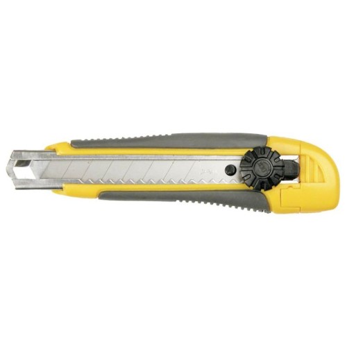 Ніж з лезом, що відламується, 18 мм, фіксуючий гвинт, металеві напрямні леза, пластмасовий корпус з антиковзким покриттям.