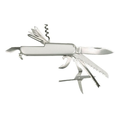 Ніж складаний 11 лез, сталеві накладки, нержавіюча сталь, нержавіюча леза, ніж, ножиці, пила, скребок, відкривачка для пляшок, відкривачка для консервних банок, штопор, шило, гвоздодер, викрутка PH, напилок
