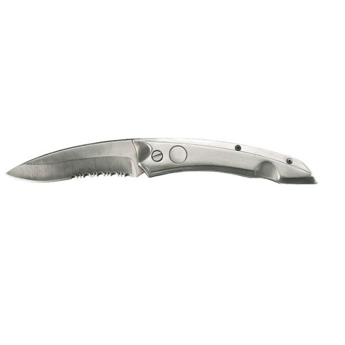 Ніж універсальний, лезо 80 мм, пружинний, нержавіюче лезо, пружинний механізм доведення леза до робочого положення, фіксація леза з кріпленням на ремінь.