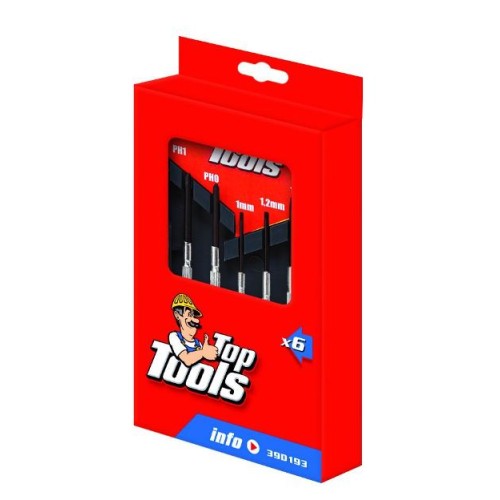 Отвертки прецизионные, набор 6 шт., закаленная углеродистая сталь, шлицевые наконечники 1, 1.2, 1.8, 2.4 мм, PH0, PH2