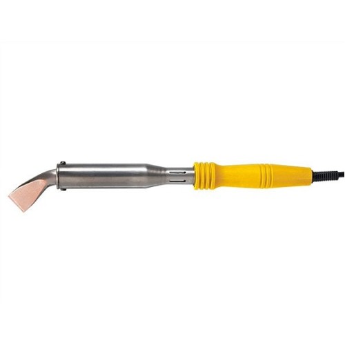 Паяльник електричний Topex призначений для монтажу електронних компонентів та провідників на друковані плати за допомогою свинцево-олов'яного припою та флюсу, а також для демонтажу електронних пристроїв. Оснащений змінним мідним паяльним стрижнем, який трохи сплющений і має форму плоскої викрутки.