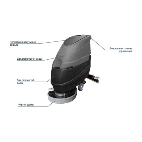 Ефективне очищення підлоги забезпечує дискова щітка. Оснащена плаваючою головкою, щітка під час роботи перебуває у постійному контакті з поверхнею, навіть якщо по дорозі зустрічаються нерівності. Завдяки чому машина якісно відмиває кожен сантиметр покриття для підлоги.