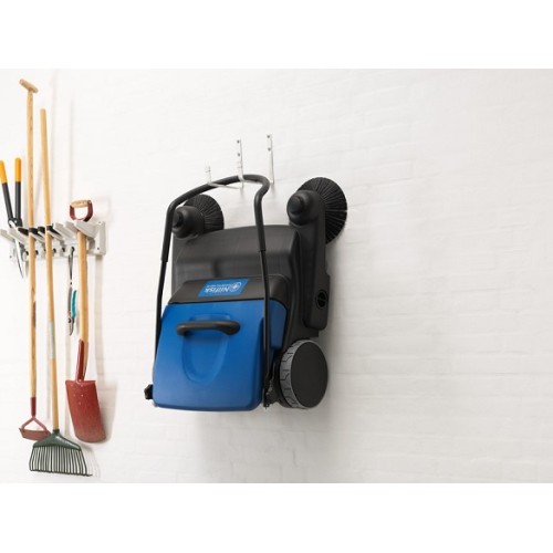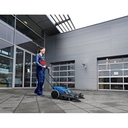 Великий та міцний бункер з ручкою для перенесення легко спорожняти. Міцна антикорозійна рама гарантує довговічність та надійність машини. Дві основні та бічні щітки забезпечують високу ефективність прибирання, дозволяючи працювати у 5 разів швидше, ніж за допомогою традиційної мітли.