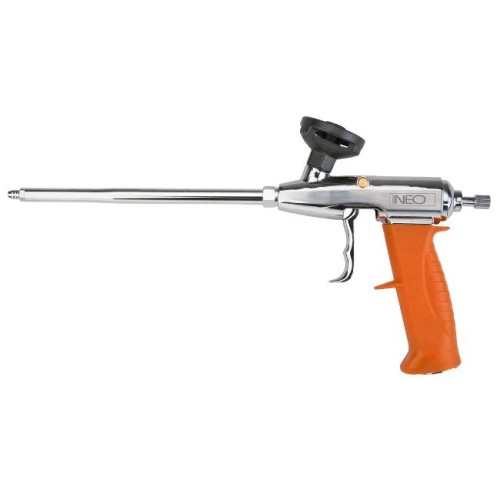 Пістолет для монтажної піни NEO з латунною головкою та механізмом з тефлоновою кулькою, що оберігає витікання піни під час роботи.