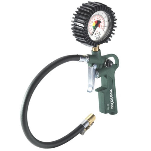 Шинний манометр Metabo RF 60 – інструмент, що працює на стислому повітрі. Він використовується для перевірки та накачування шин. Яскравий манометр із чіткою шкалою - для простого зчитування даних. Гумова накладка захищає пристрій від механічних пошкоджень. Довжина шлангу становить 35 см.