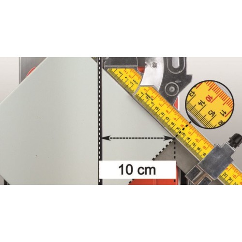 5) Діагональний різ: позиція гоніометричної лінійки 45° для швидкого зчитування довжини при діагональному різі.