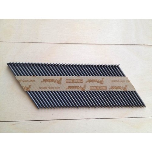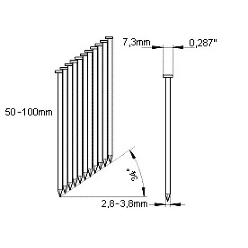 Тип кріплення: цвях з напівкруглим капелюшком, у стрічці під кутом 34° (обрізаний капелюшок у паперовій касеті)