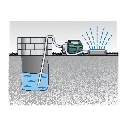 Система побудована на високоефективному поверхневому насосі Metabo. Насос працює на новому конденсаторному двигуні, а його корпус та вал, виготовлені з високоякісної нержавійки та мають тривалий термін служби.