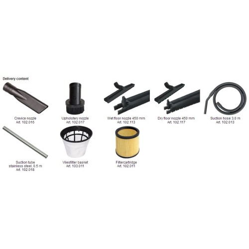 Пилосос спроектований для інтенсивної щоденної експлуатації - надійний контейнер із удароміцного пластику, міцна колісна база з металевими роликами та великими гумовими колесами.