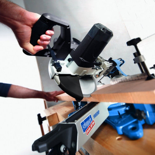 Пила торцювальна Scheppach HM-100LXU широко використовується пристрій, як у побуті так і в професійній сфері (столярна майстерня). Це торцювальне обладнання незамінне при виготовленні меблів та дерев'яних конструкцій. В основу пилки покладено потужний двигун (2000 Вт). Даний апарат з протяжкою відмінно підходить для обробки великої ширини заготовок. Конструкція пили виконана із міцного алюмінію дуже легка. Розробником був передбачений лазерний покажчик - високоточне виконання поставленого завдання. Для якісного різання модель оснастили 254 мм різальним диском, виготовленим з високоякісного матеріалу та карбідовими напайками на зубцях. Цей високоякісний міні-верстат виконаний німецькими фахівцями, тому відповідає всім нормам та стандартам якості. Дозволить виконати як прямокутне, так і похило пиляння заготовок з деревного матеріалу, пластикового, алюмінієвого та будь-якого іншого.