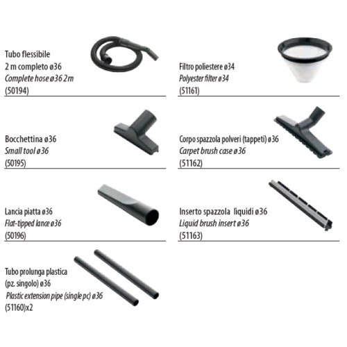 Додаткові функції та характеристики: Фільтр для захисту двигуна: так Можливість збирання рідини: так (без подачі води) Захист від перегріву: так Матеріал корпусу: пластик Матеріал бака: нержавіюча сталь Колір корпусу: чорний Розетка для підключення електроінструменту: ні Регулювання потужності: ні Світловий індикатор забруднення фільтра: ні Датчик рівня рідини в баку: ні Антистатична обробка: так Ручка для зручного переміщення пилососу: так А крім стандартної комплектації додатково, по потребі, можна доукомплектувати пилосос: 1) Фільтруючим елементом (патронний фільтр) для більш тонкого очищення - купується окремо 2) Багаторазовим мішком для сухого збирання 2) Шлангом всмоктування: Ø 36 м, можна доукомплектувати будь-які довжини - купується окремо