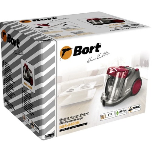 Пилосос Bort BSS-2400N – потужний (2400Вт) домашній пилосос для професійної очистки з подвійним мультициклоном V12. Сучасна конструкція пилососа передбачає 2 камери з 12-ступінчастою фільтрацією. Чисте повітря у приміщенні – одна з основ здоров'я та гарного самопочуття. Подвійний HEPA фільтр з рівнем очищення повітря до 99,97% дозволяє використовувати пилосос у приміщеннях з дітьми та алергіками. У комплекті інноваційна турбо-щітка, яка збирає все сміття як з паркету, так і з килимових покриттів. Ретельне прибирання відбувається за рахунок комбінації щетини і м'якого силікону в складі щітки, що чистить.